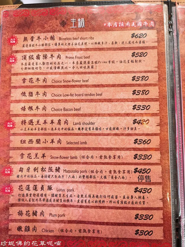 ▲右邊是主鍋(套餐)價格