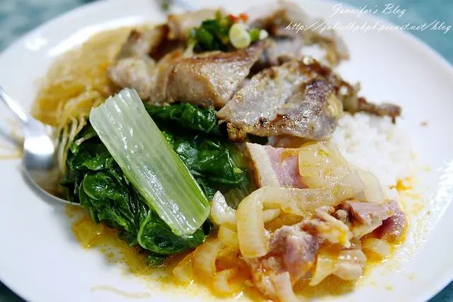 越式烤排骨飯 80元,上面的烤排骨滿好吃的,排骨肉沒有帶骨,肉很入味,搭配酸酸甜甜又有點微辣的醬汁好涮嘴