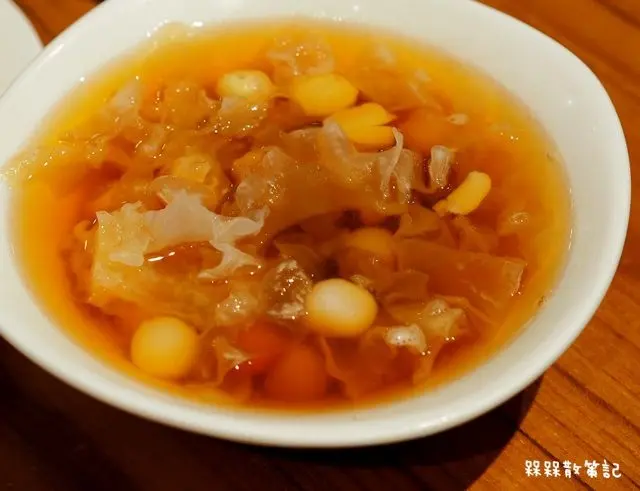 銀耳的作法則是保持它的嫩脆,吃起來不會過於軟爛,但是也不會硬到難咬。雖然個人喜歡燉煮得更為入口即化的口感,但是相信這種保有嚼勁的作法還是有許多人都很喜歡。