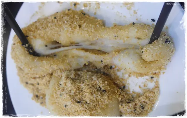 看到白泡泡幼咪咪的「燒麻糬」在熱油裡翻來覆去的,好像圓滾滾胖嘟嘟的小孩在游泳一般...
