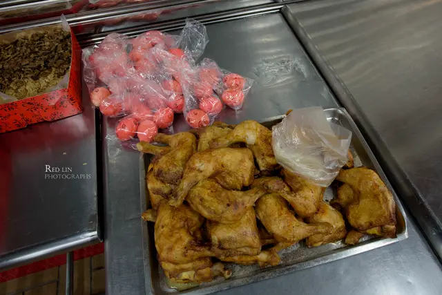 不過他的雞腿讓我覺得跟坊間賣的不太一樣。一般彌月油飯的雞腿不外乎都是炸雞腿,而這支....是烤的耶!!