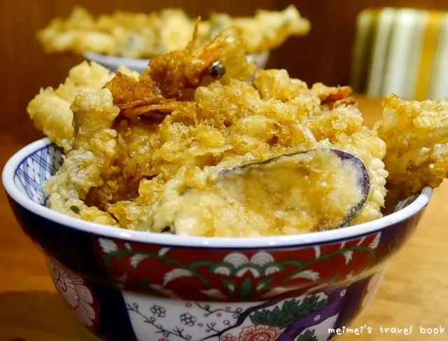 端上來時一大片什錦天麩羅鋪在上面,看起來相當華麗。