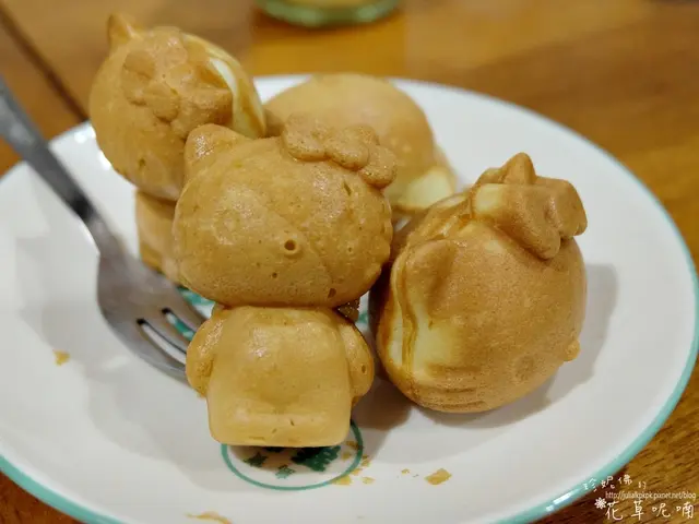 前面兩塊白白的是凱蒂造型的麻糬,吃的時候還是溫熱的