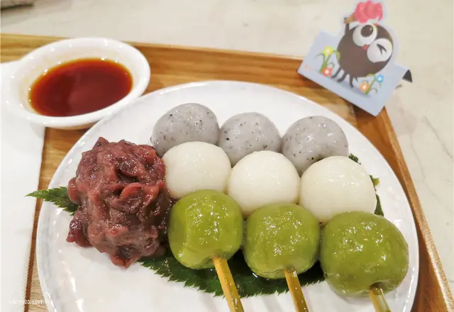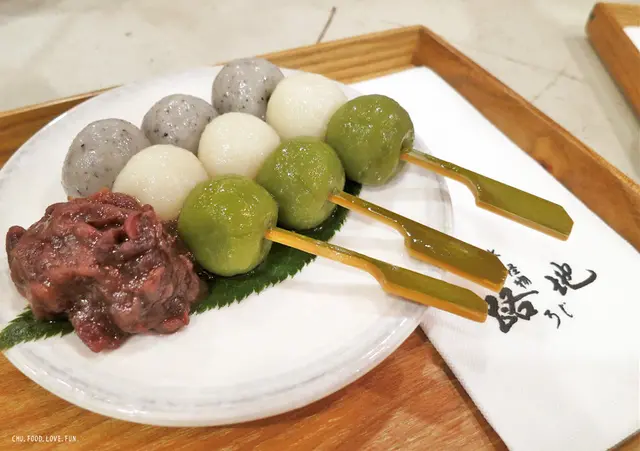 一串有三種口味,芝麻、原味、抹茶,一樣搭配紅豆泥