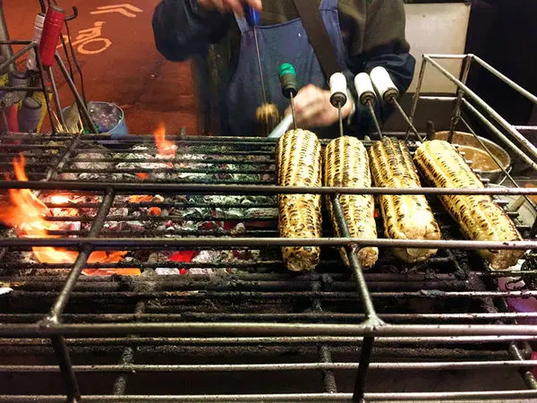 阿伯就會趁烤玉米的空檔瞄一眼重量,