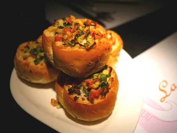 麵包上層鋪上台式口味的青蔥和火腿,完全就是令人懷念的麵包店滋味。
