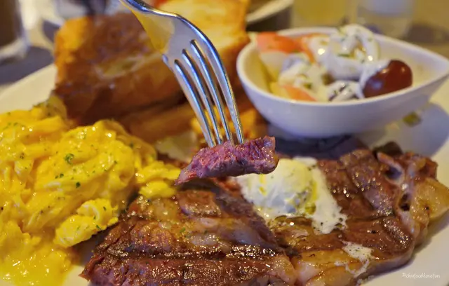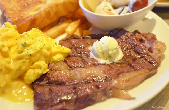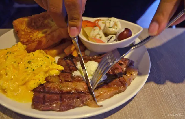 雖然相較一般早午餐價格是稍微高了些,但這塊牛排份量有驚人