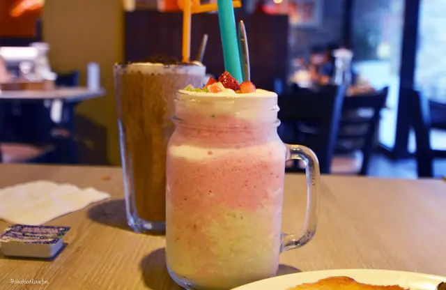 且上方還有草莓丁點綴著,喝到果粒的感覺,口感特別顯著,尤其少女們絕對對這種漸層粉嫩感無法招架啦
