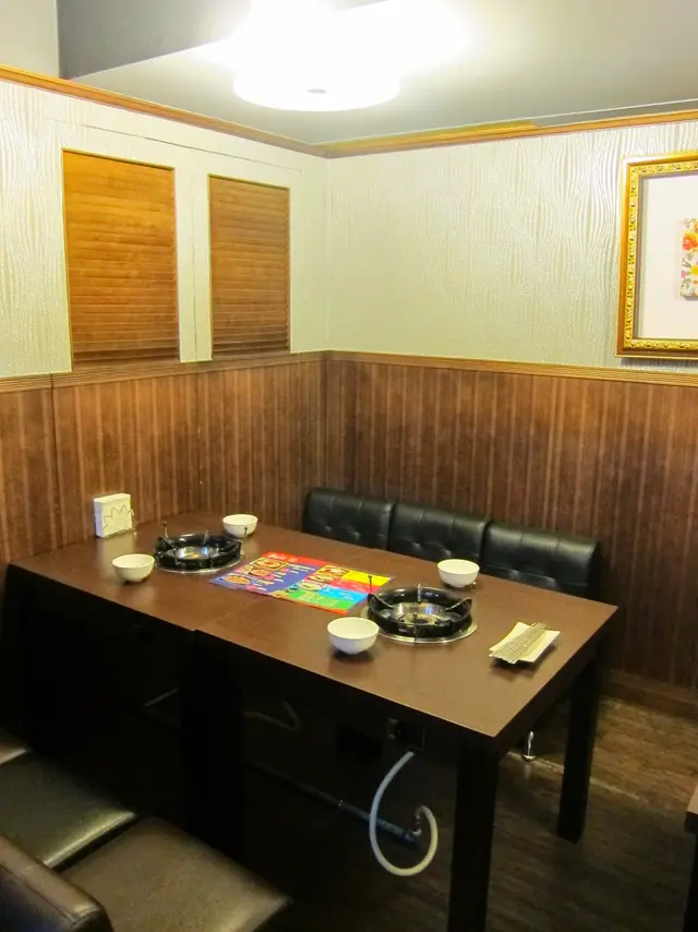 左邊是廚房,隔著小門簾可以看到裡面的作業流程,假日的客人多,即使有訂位我們還是被安排在2樓的位子,二樓座位以包廂為主,雖然說是包廂但也不能說是獨立包廂,因為每個木頭隔起來的空間裡都有2個或2個以上的座位,除非人夠多,不然還是有可能會跟別人坐在隔壁桌