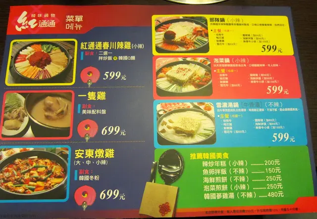 菜單很簡單,一張兩面,一面是食物,一面是鍋物單點食材跟飲料,菜色不多,全部就是6種鍋、1種辣炒年糕、1種拌飯、2種煎餅跟1種湯