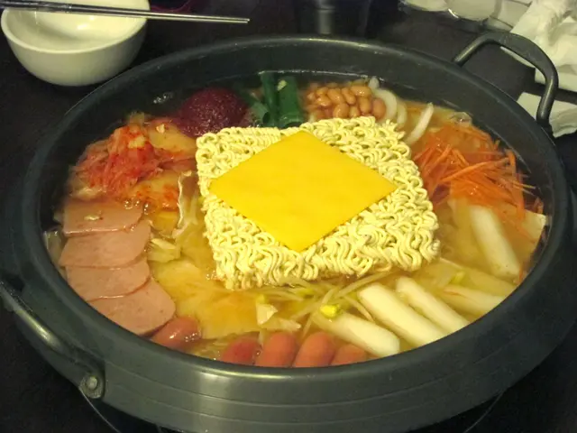 第一次吃部隊鍋也是在國父紀念館一級戰區巷弄裡的某間藝人開的店,也是一吃就愛上!後來發現其實自己也可以做出來,買包辛拉麵、火腿、熱狗、起司、年糕、泡菜等配料,在家也可以輕鬆吃部隊鍋~