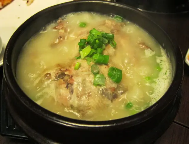 感覺很補的雞湯,但今天天氣有點熱,加上吃完後面的拌飯已經有點飽,所以我只吃了一點雞肉,燉煮雞湯的雞肉就是很軟嫩~人參的味道不會很明顯,不敢吃人參的人也不用怕!