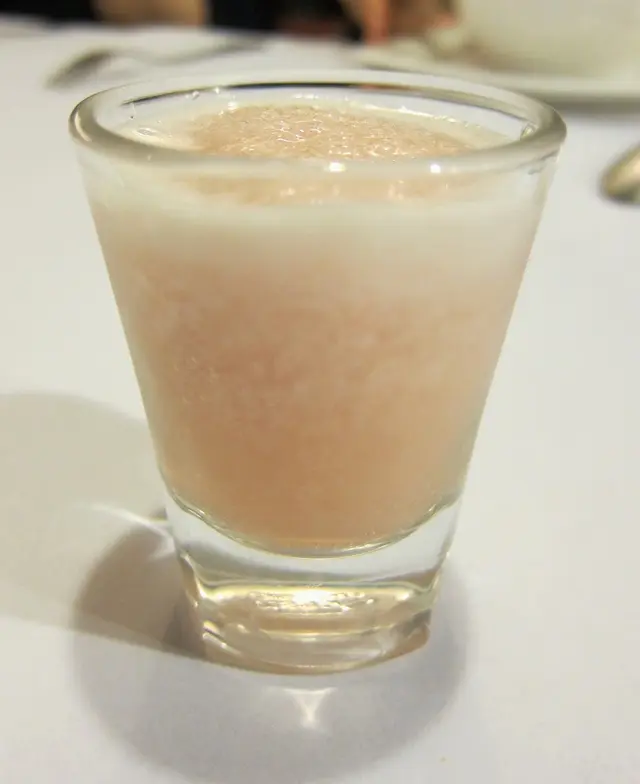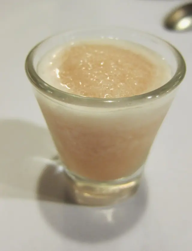 上主餐前服務人員會先送上這個梅子冰沙,用來清除口中的味道