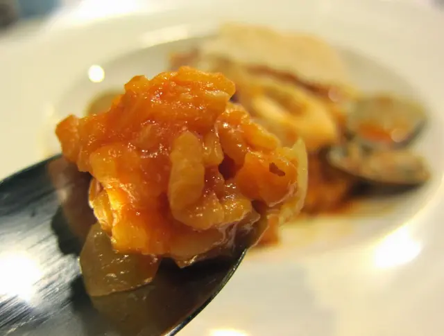 蕃茄海鮮燉飯的配料有透抽、紅爐蝦、蛤蜊,都是我不能也不愛吃的海鮮~