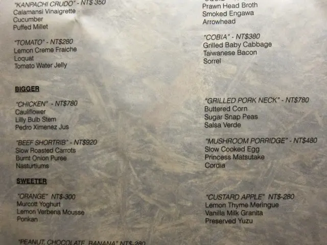 菜色選擇其實不太多,簡潔有力分為smaller前菜、bigger主菜、sweeter甜點