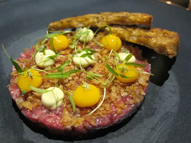 這份tartare的表面有一層像是鍋巴的東西,比起驢子餐廳純粹的生牛肉軟嫩口感
