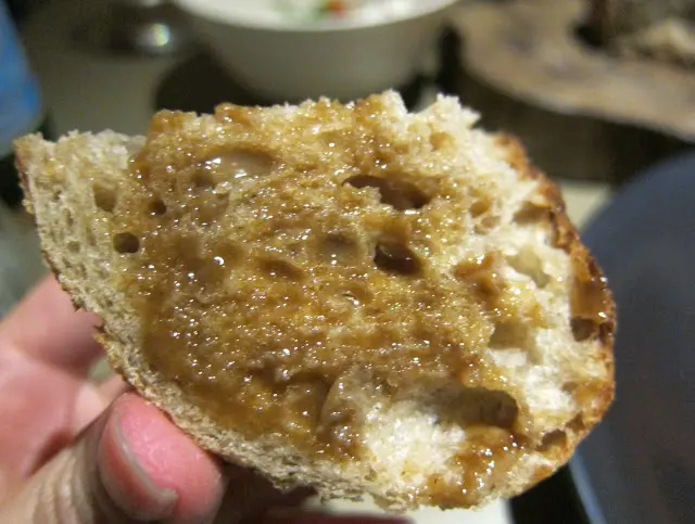 薄脆麵包烤得焦黃,烤箱的味道還殘留在上面