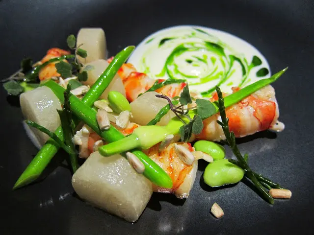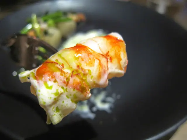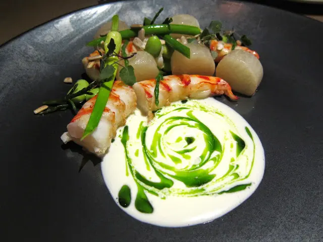 醬料是青蔥奶油醬,造就這盤有點藝術感的明蝦