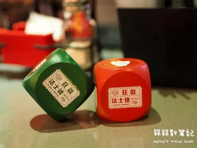 現場提供紅配綠的骰子,讓人在骰到同樣圖案的時候,就能獲得招待卷,讓人玩得開心也能吃得開心。
