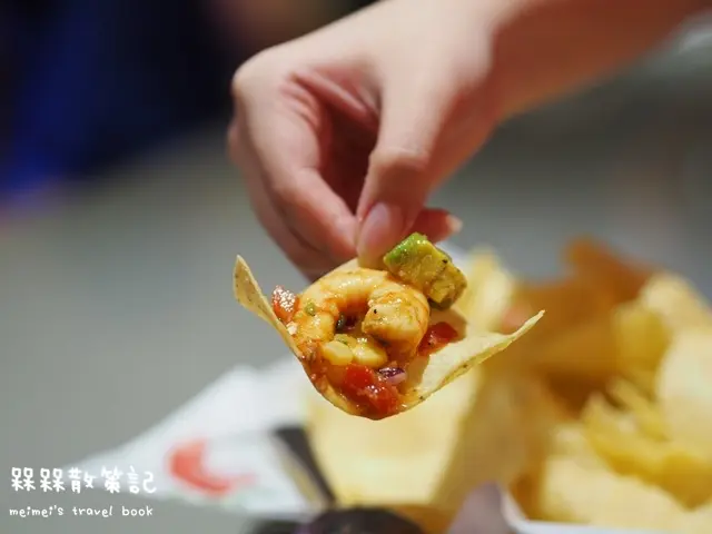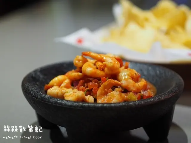 鮮蝦和墨式手搖鮮蝦莎莎缽相似,不過多了鮮蝦旁搭配墨西哥風味的牛絞肉,口味因此較重,不過再配上鳳梨番茄丁與辣味柑桔醬,又多了一層清爽。