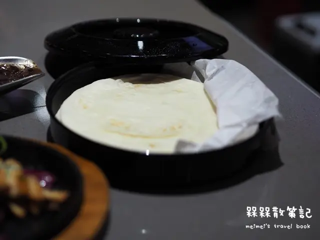 而有蓋黑色鐵盤中則提供捲餅,讓捲餅保持溫熱。