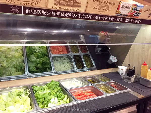 從拿到餐點時,就得將自己需要的生菜加入自己的菜籃中