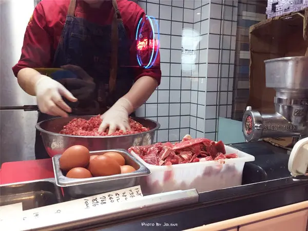 使用牛肉絞肉用手揉成球狀,吃來不會分散肉質
