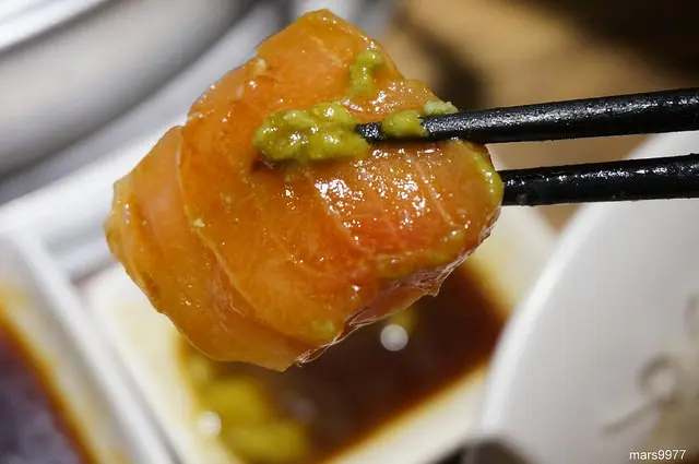 依季節新鮮漁獲為主來搭配,這次來吃到的有以旗魚、紅魽加上鮭魚、透抽來等生魚片