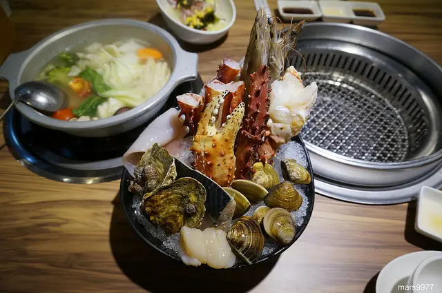 種類相當的包括了前菜、海鮮、燒烤、蔬菜、湯品、肉類、火鍋料等