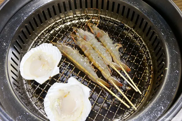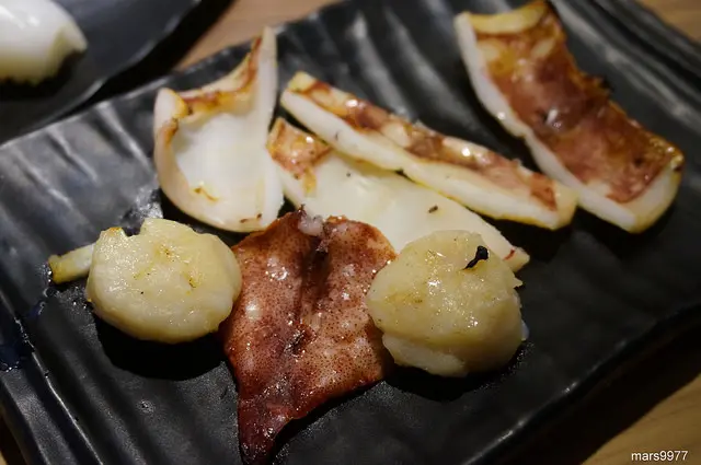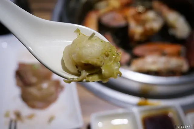 而扇貝烤至熟成,來品嚐咬勁口感上相當十足的說呀