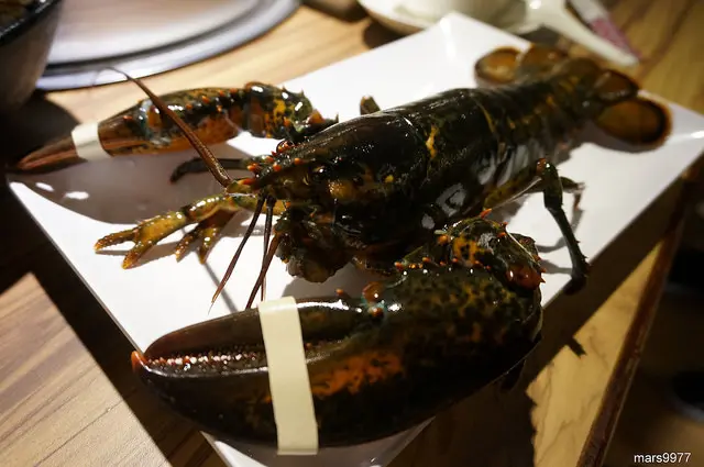 這尾龍蝦也真的活力十足,高舉雙螫揮舞著說吃我吃我吃我呀~哈哈哈