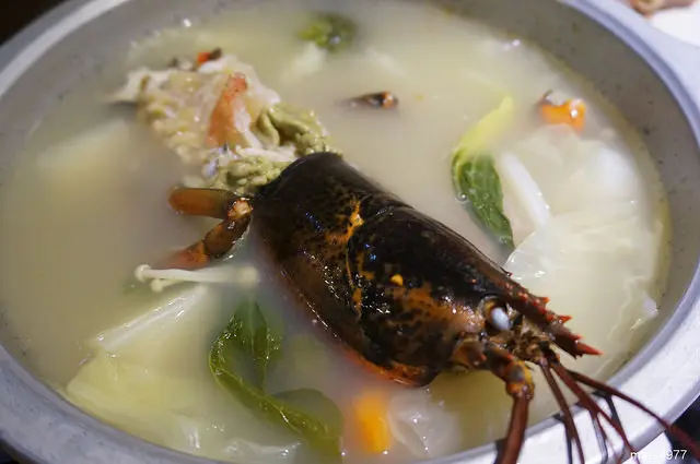 而龍蝦的大頭頭,當然也是煮湯的好物,同樣來下入鍋物裡來熬煮著