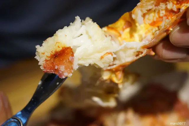 同時也細心的將他對半剖開,讓你在利用小叉時來更能方便來挑取這一段段的蟹肉