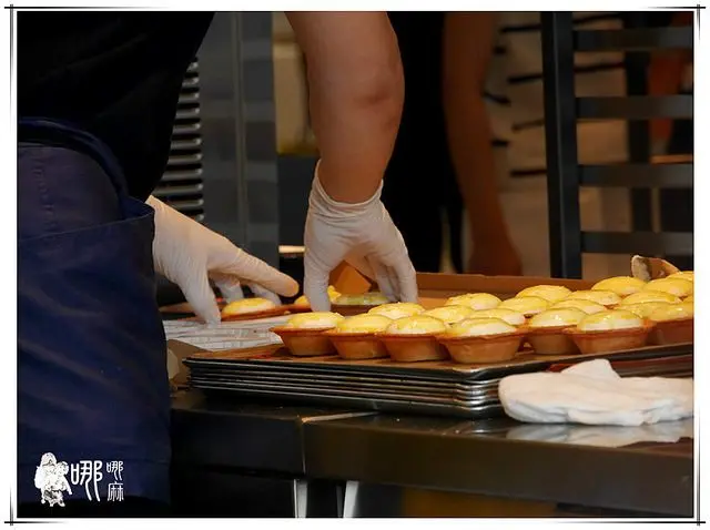 透過透明櫥窗看到工作人員們很仔細的在處理每個起司塔,