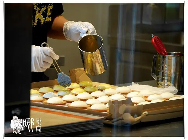 排隊時可以透過櫥窗看到工作人員正在處理起司塔,