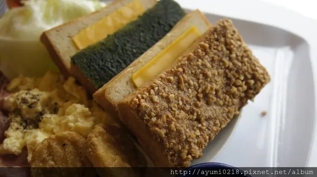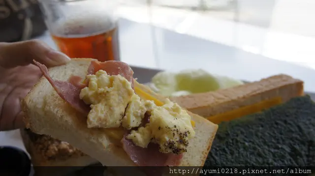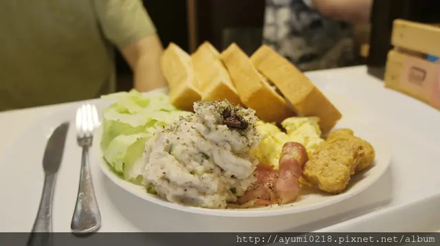 但130..很划算ㄟ..有培根.雞塊.炒蛋.生菜.還有薯泥超大球...4片手作吐司
