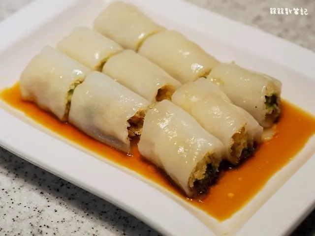 亦是港式飲茶常見之菜色。米網皮的滑溜搭配荸薺的酥脆、蝦漿的彈牙及炸腐皮的酥脆,口感層次豐富。只是餡料並不十分飽滿,讓人略感尚有未盡之處。