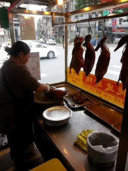 烤鴨都是當天料理,正看到小老闆將整排肥美的鴨子做準備處理,