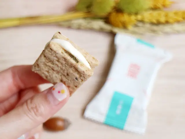一撕開包裝就聞到非常濃郁的蔥香,整個胃口大開,揉入五結糙米及黑芝麻、白芝麻,內餡飽滿紮實,小巧的正方形狀一口塞進嘴裡嘟嘟好,優雅品嚐不掉屑