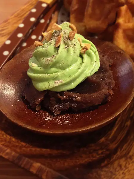 再來是友人的 比利時烈日鬆餅套餐(紅豆抹茶鮮奶油) $200 ↴