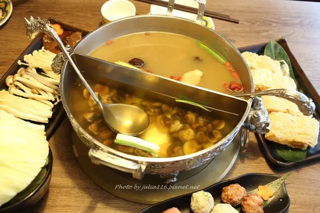 兄弟鍋是以蛤蠣為主的清爽高湯為鍋底;養生鍋是以中藥材敖煮,有較重的藥膳味