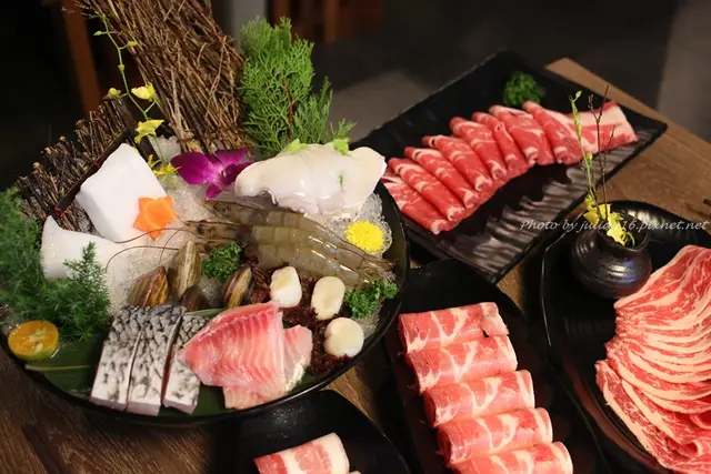 像是美國Choice等級肋眼沙朗、牛小排、手工自製丸餃滑、韓國生蠔、北海道大干貝、阿根廷天使紅蝦、生魚片級的海鮮等等