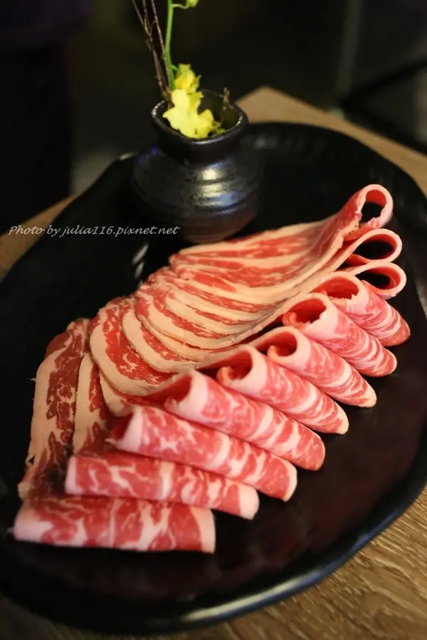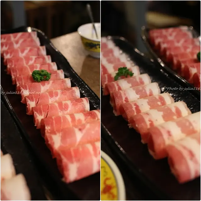 豬五花(右)與豬梅花(左)雖比不上半熟牛肉來的細緻迷人,但好吃程度仍值得一試