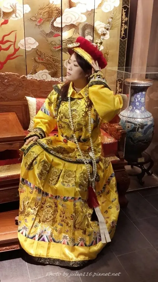 龍椅旁還有一對皇帝與皇后穿的袍子,哈哈~這不單是裝飾用,客人可以變裝並坐上龍椅來個COSPLAY呢XD