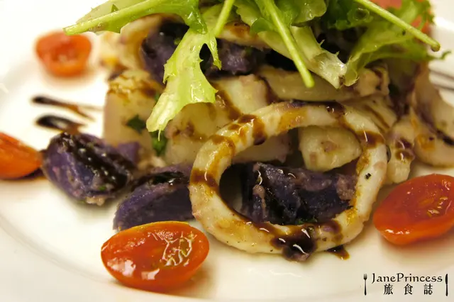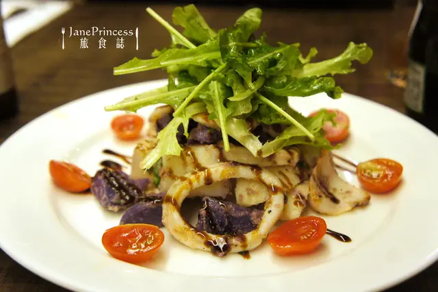 沙拉部分 店家則是推薦我們 炙燒中捲佐馬鈴薯溫沙拉