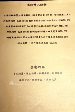 這天我們享用的餐點是<鮮蝦海鮮+神戶盤克夏黑豚 雙人餐> $3280