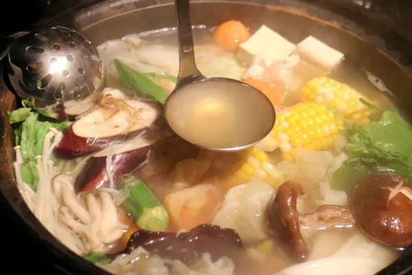 與一般火鍋店不同的是,沒有另外的菜盤,而是都先將蔬菜放到鍋中了!