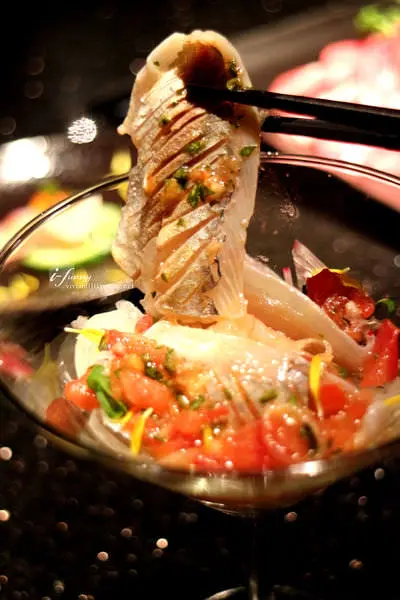 竹筴魚及其內的鮮蝦都是生食等級的食材,