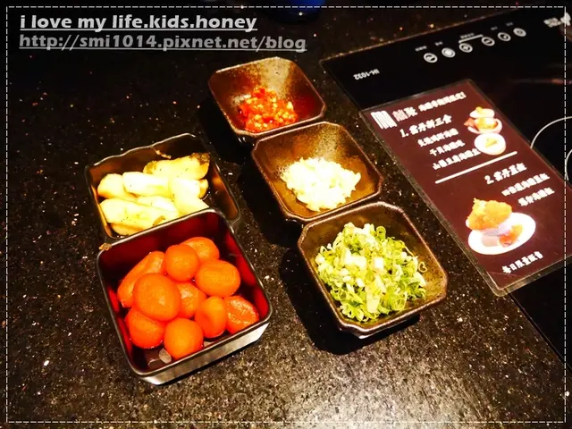 基本醬料有柚子醋跟日式醬油,可以跟桌上的辣椒、青蔥、蒜末自由搭配