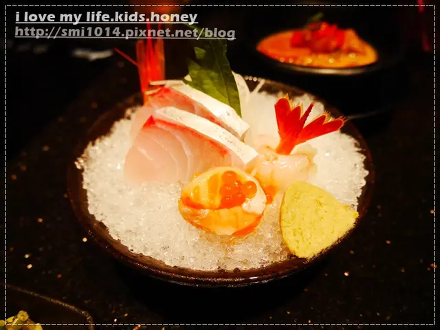 用了紅柑、鮭魚、日本甜蝦,紅柑生魚片帶點脆度,鮭魚滑順柔軟,日本甜蝦肉質Q彈